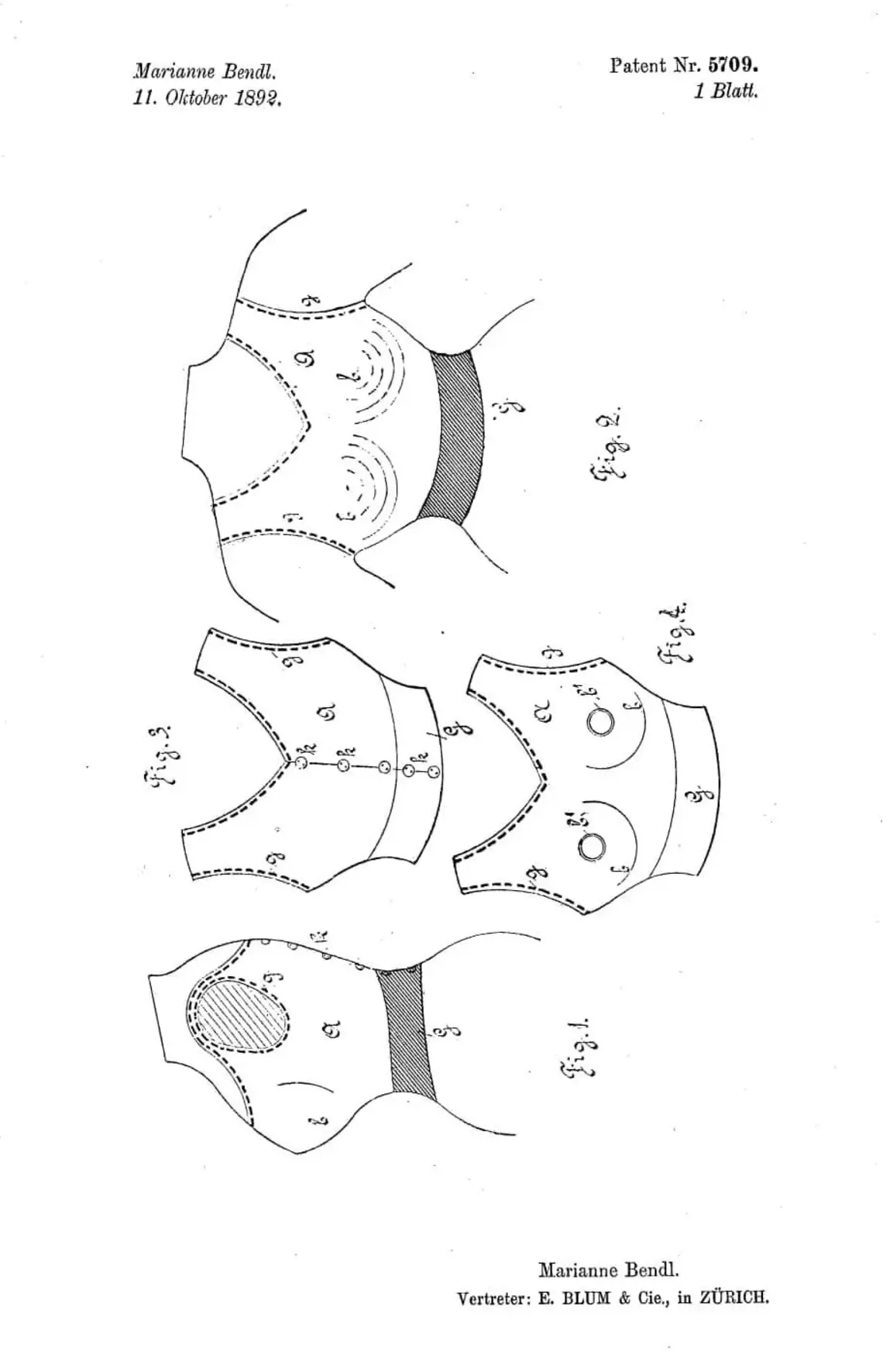 Marianne Bendls Patent für den Busenschützer, 1893, Europäisches Patentamt
