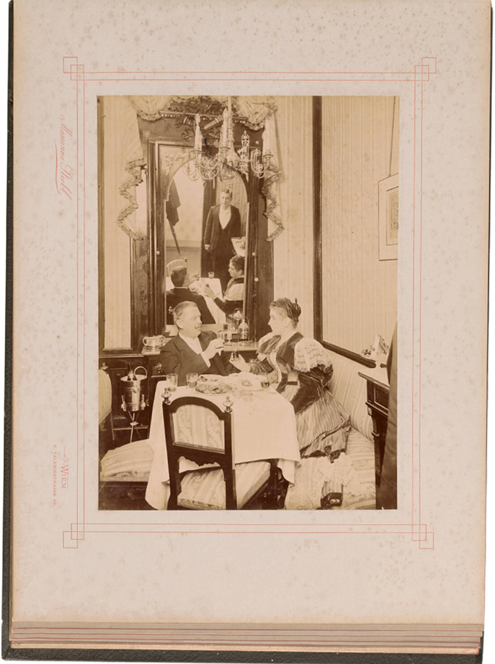 Wachsende Mobilität und Begeisterung für technische Innovationen zeichnete um 1900 nicht nur Industrie und Gewerbe aus, sondern auch zahlreiche Privatleute der Stadt. Vor dem Umzug in eine neue Wohnung war jedoch vielen – etwa den Eltern des Komponisten Alban Berg – die Dokumentation des alten Heims (inklusive zwangloser Inszenierung der Familienmitglieder) durch eine Blitzlicht-Spezialistin wie Marianne Strobl wichtig.