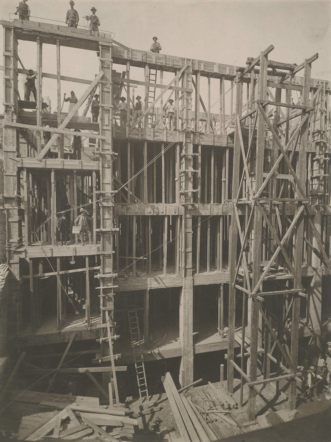 Im Auftrag einiger ambitionierter Unternehmer reiste Strobl ab 1896/7 rastlos zwischen Schlesien und Triest, Ostungarn und Vorarlberg: Die Verwendung von Eisenbeton („béton armé“ nach unterschiedlichen Systemen) war gerade dabei, durch die Geschwindigkeit der Ausführung und die Belastbarkeit der Decken die Bauindustrie zu revolutionieren. Strobls Fotografien dokumentierten den Fortgang der Arbeiten und das konstruktive Gerüst der Gebäude, das später hinter konventionellen Fassaden verdeckt werden sollte. Die Ausstellung „Nur die größten Baustellen. Marianne Strobls Fotokampagnen“ im Photoinstitut Bonartes nähert sich dem Thema Eisenbeton (der gerade zu Ende gegangenen Sonderschau im Wien Museum „Anatomie einer Metropole“) aus fotohistorischer Perspektive. Viele Aufnahmen entstanden ursprünglich als Teil der Patentvereinbarung mit den französischen Erfindern des Verfahrens, die sie in ihren international kursierenden Fachzeitschriften publizierten. In den fast jährlich aktualisierten eigenen Werbebroschüren der ausführenden Unternehmen – allesamt aufstrebende Baufirmen wie Ast & Co, Rella, Porr oder Pittel & Brausewetter – fanden sie dann ebenfalls Verwendung, die Weitergabe der Fotografien an die jeweiligen Bauherren für deren eigene Publikationen war ebenfalls nicht unüblich.