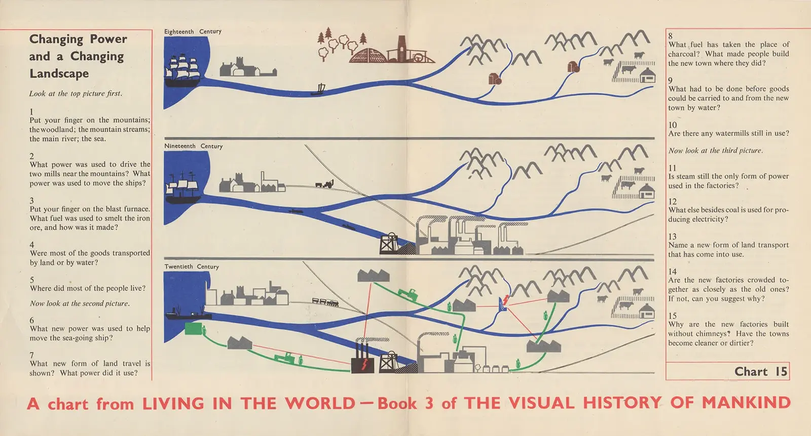 Marie Neurath erkannte, dass die Verwendung von Piktogrammen in Kinderbüchern ihre Einsatzmöglichkeiten weit über die Präsentation von statistischem Material ausdehnte. Mit Bezug auf Visual History schreibt sie: „Wir konnten diese Geschichten mit Symbolen erzählen, wie wir sie in unseren Bildstatistiken und Organisationsschemata verwendet haben, zum Teil in einer freieren Anordnung als Abfolge kleiner Szenen – zum Beispiel, wenn wir zeigten, wie Feuer gemacht wird und wie in früheren Zeiten große Tiere gejagt wurden.“