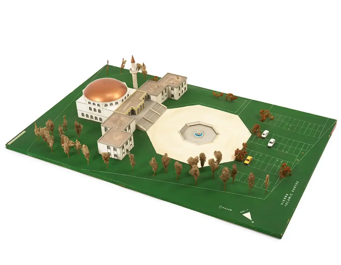 Über fast sieben Jahrzehnte scheitern alle Versuche, in Wien eine Moschee mit Minaretten zu errichten. Unter Lueger wird ein Bau beim Türkenschanzpark in Erwägung gezogen. Weitere Pläne werden 1915 sogar dem Kaiser vorgelegt, aber nie verwirklicht. In den späten 1940er Jahren stellt die ägyptische Regierung die Teilfinanzierung einer großen Moschee in Aussicht, aber erst ein von Saudi-Arabien finanziertes Projekt wird 1975 wirklich gebaut. Der damals unbekannte Baumeister des Gebäudes, Richard Lugner, nutzt den ungewöhnlichen Auftrag erfolgreich zu Marketingzwecken. Das Architekturmodell einer frühen Planungsphase steht bis zu seinem Tod im Eingang seines Büros.