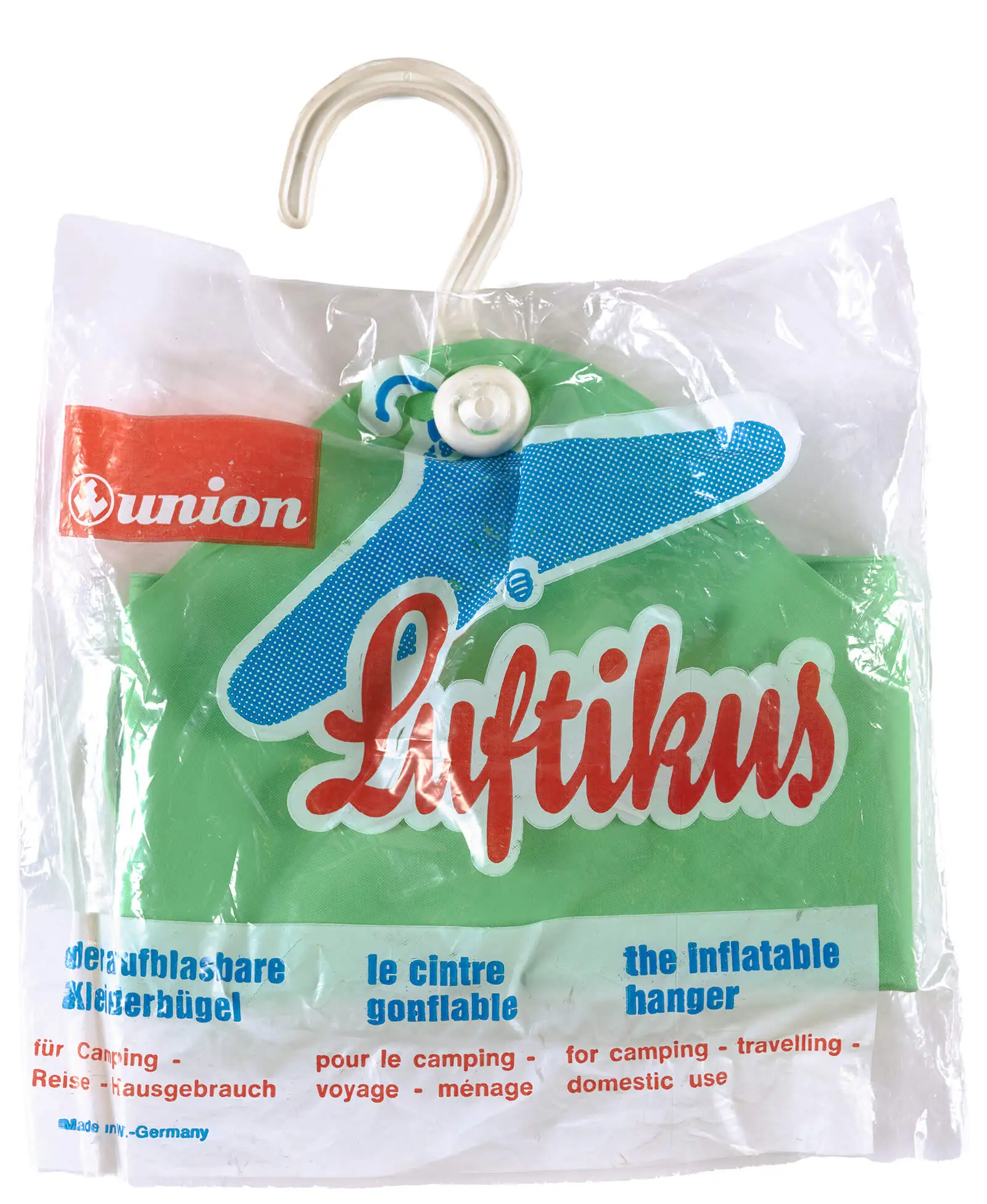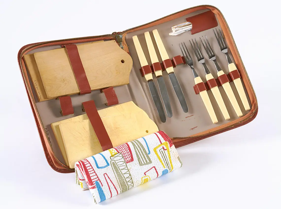 Als besonders förderlich erwies sich dabei der zunehmende Einsatz von Kunststoffen ab den 1950er Jahren: Leicht und unzerbrechlich, das waren ideale Materialeigenschaften für Dinge, die man außer Haus mit sich führen und nutzen wollte. Neben den passenden Materialeigenschaften ist bei mobilen Dingen aber auch das spezifische Design ein wichtiger Punkt. Diesbezüglich gibt es eine in der Geschichte weit zurückreichende Tradition, die weitaus älter ist als das moderne Camping (und die unter anderem mit der Geschichte der militärischen Ausrüstung, aber auch allgemein mit der Geschichte des Reisens zusammenhängt), die unterwegs benötigten Gegenstände kleiner, einfacher und leichter als üblich oder aber zusammenklappbar zu gestalten. Auch in dieser Hinsicht schuf der Einsatz von Kunststoffen neue Möglichkeiten: So finden sich in den Sammlungen des Wien Museums verschiedene aufblasbare Kleiderbügel aus Kunststofffolie, die man platzsparend mitführen und vor dem Gebrauch mit einem „Körper“ aus dem eigenen Atem versehen konnte.