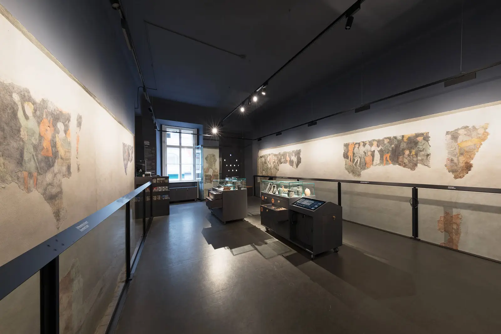 „Früher hat man einfach ´Fresken` mit Wandmalereien gleichgesetzt“, so Nathaniel Prottas. Konsequenterweise wurden die Bezeichnung Fresken nun aus dem Standort-Namen gestrichen, stattdessen lautet er nun „Neidhart Festsaal“ mit dem Zusatz „Wandmalereien aus dem Mittelalter“. Der Name spiegelt den kuratorischen Zugang wider: „Die Wandmalereien sind das zentrale Objekt. Aber generell geht es um das mittelalterliche Leben, um Tanz, Musik und Festkultur. Um die Einbindung des einzelnen Raumes in das große Ganze“, erklärt Prottas.