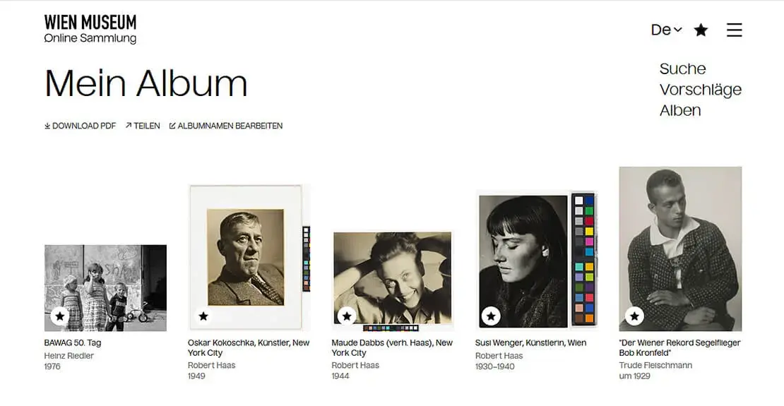 Die Objekte, Suchvorschläge und Alben werden laufend mehr. Gleichzeitig wird es zu einzelnen Objekten mehr vertiefende Inhalte wie Texte und Links geben. Ein Ziel für die Eröffnung des neuen Museums am Karlsplatz ist auch die Integration der Objekte, die in der neuen Dauerausstellung zu sehen sein werden. Und technisch gibt es viele Ideen, die Suche noch weiter zu entwickeln. Wir haben von Anfang an mit internationalen Standards gearbeitet und z.B. die Schlagworte für Bildmotive aus „Iconclass“ verwendet, ein international verwendeter Thesaurus aus der Kunstgeschichte und Ikonographie, damit wir hier auch international Verknüpfungen herstellen können.