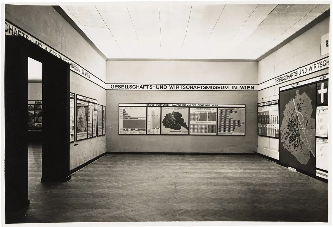1925 wurde er schließlich zum Direktor des von ihm selbst begründeten Gesellschafts- und Wirtschaftsmuseums (GWM) ernannt, das aus dem Museum für Siedlung und Städtebau entstanden war. Es wurde zu einer wichtigen Bildungsinstitution, die von der Stadt Wien und der Arbeiterkammer, von der Gewerkschaft und Sozialversicherungen unterstützt wurde. In den folgenden Jahren entwickelte Neurath gemeinsam mit einem Team die „Wiener Methode der Bildstatistik“. Sie richtete sich nicht zuletzt an die Arbeiter:innen, denen mit visuellen Mitteln soziale und ökonomische Zusammenhänge veranschaulicht werden sollten, wurde aber auch im Zusammenhang mit der Schulreform erprobt. Ziel dieser visuellen Bildung war ein empowerment, die Befähigung einer benachteiligten sozialen Klasse zu selbstbestimmtem, politischem, ja letztlich revolutionärem Handeln.