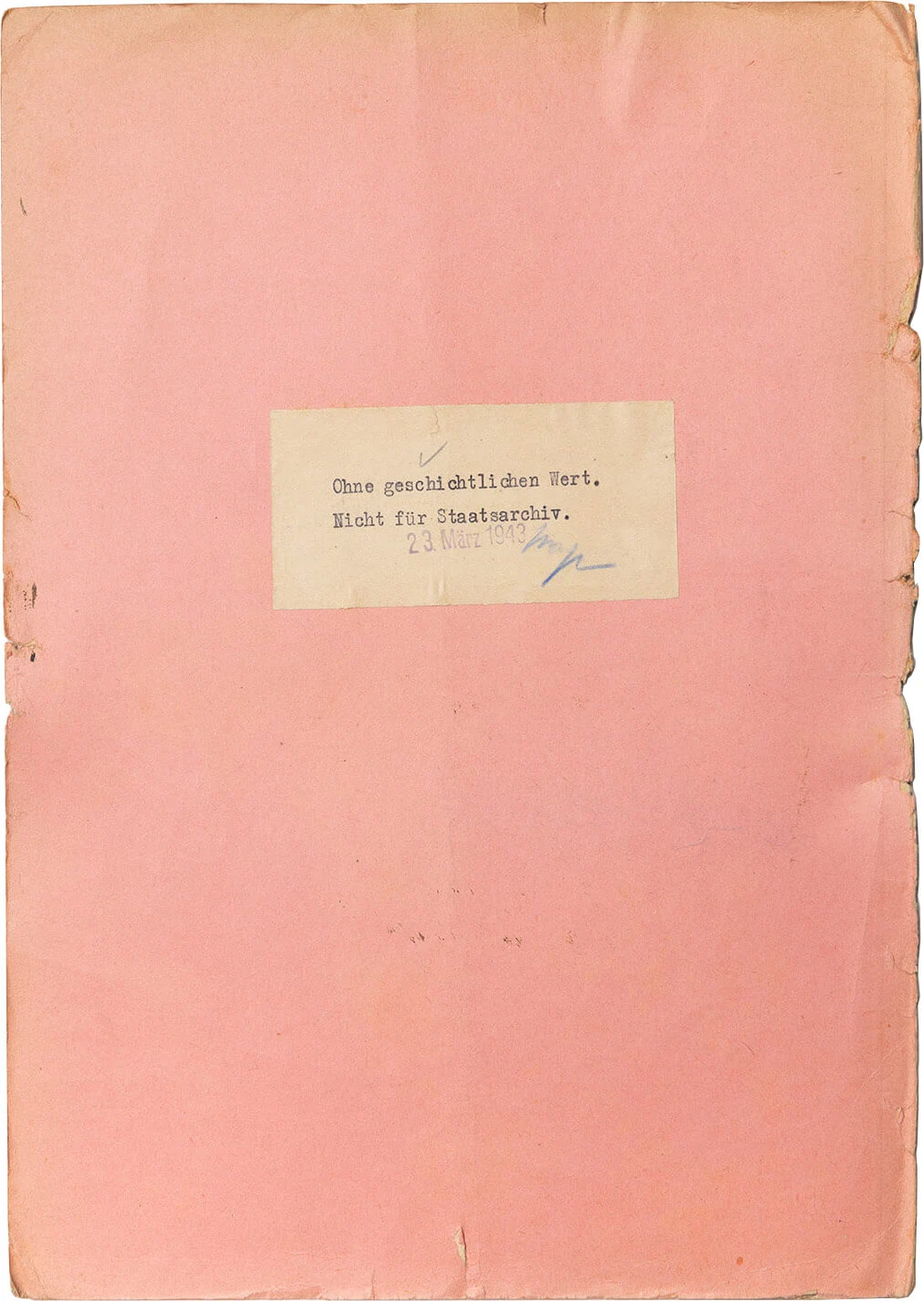 Ein Aufkleber auf vielen der Aktenmappen gibt an, dass der Fall, der darin behandelt wird, „ohne geschichtlichen Wert“ sei. Wiener Stadt- und Landesarchiv
