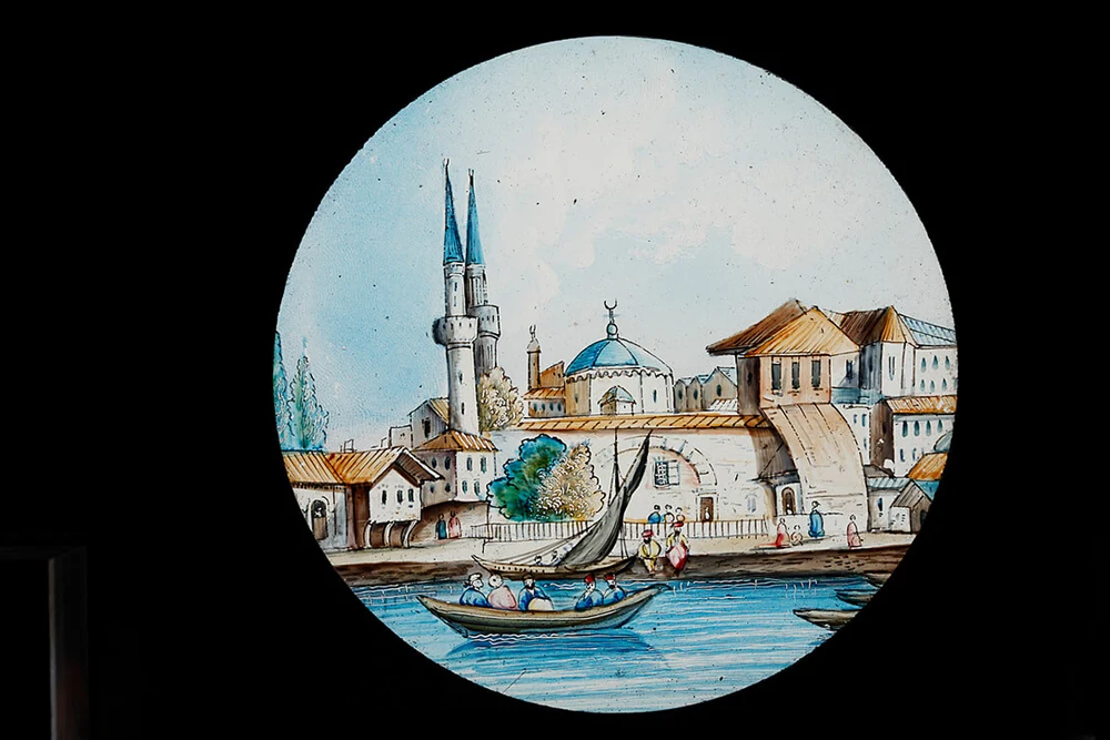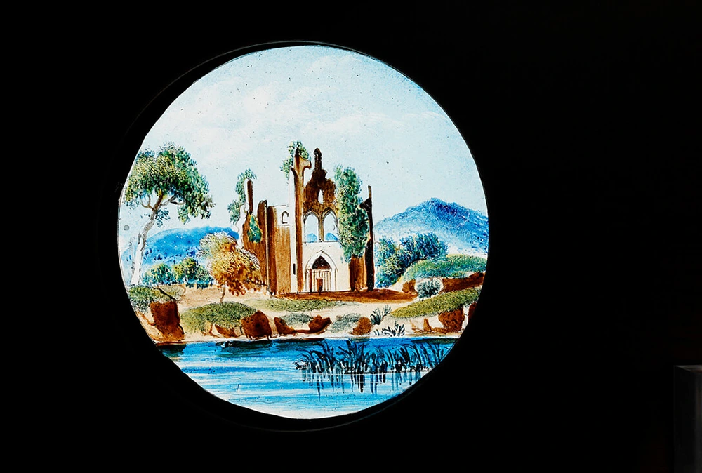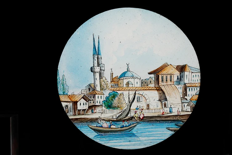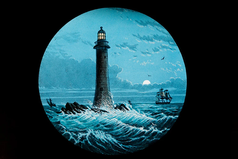 Auch mit der Laterna magica, dem Vorläufer des Diaprojektors, holte man sich die Welt ins Haus: In einem dunklen Raum, in dem die Umgebung völlig ausgeblendet war, projizierte man auf Glas gemalte Bilder an die Wand. So konnte man ganze Lichtbildervorträge veranstalten, die in Wien z. B. im Theater in der Josefstadt oder im Strampfer-Theater (Tuchlauben 16) stattfanden. Durch ausgeklügelte Überblendungstechniken konnten auch zeitliche Abläufe wie etwa der Wandel von Tag zu Nacht dargestellt werden.