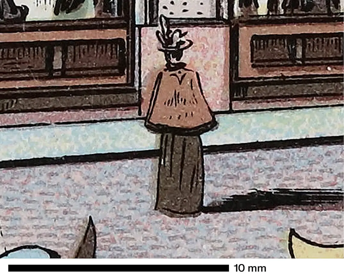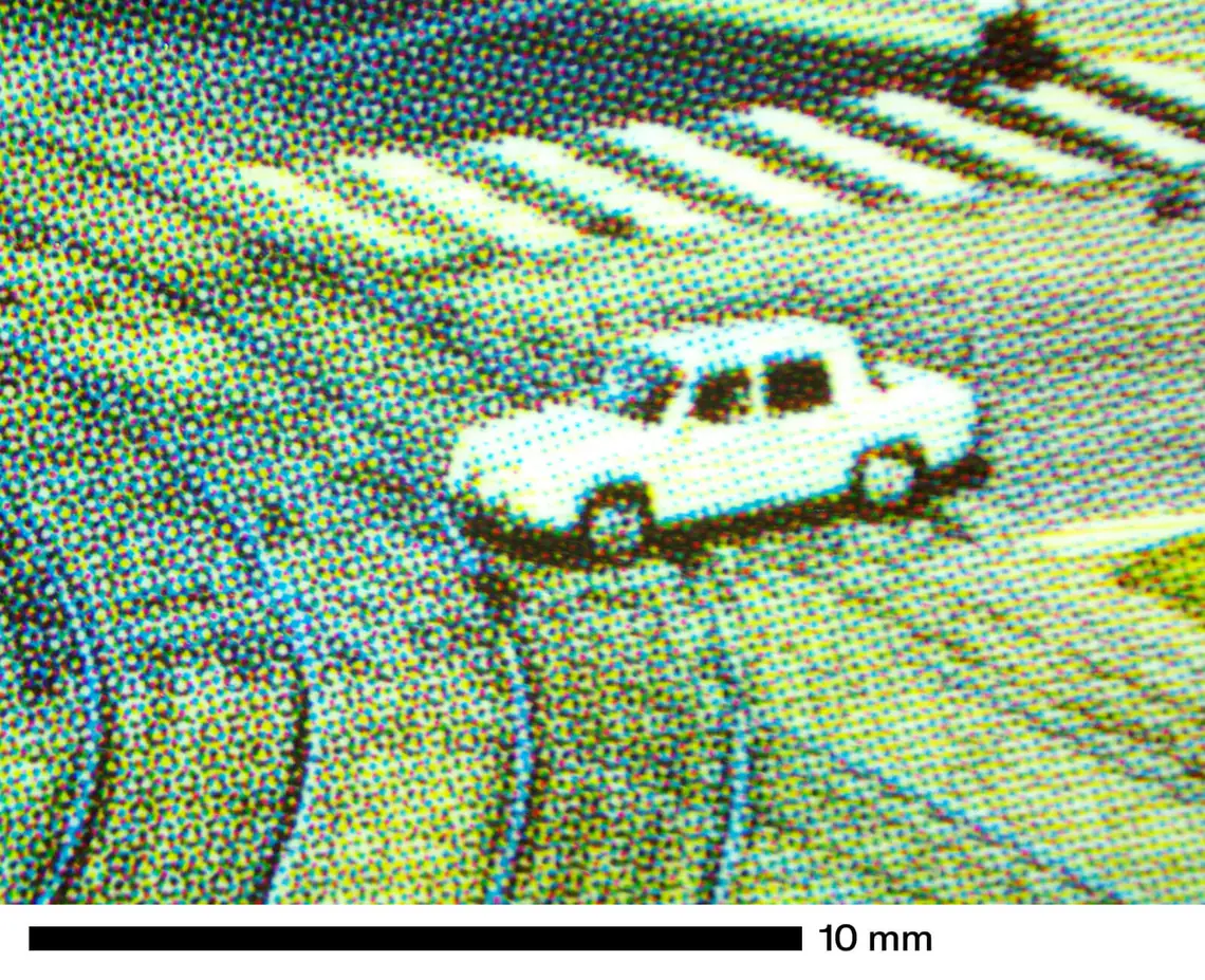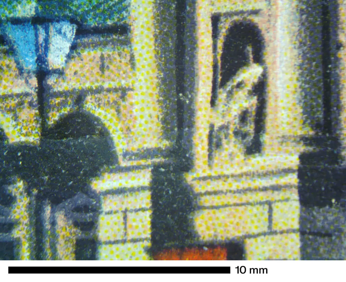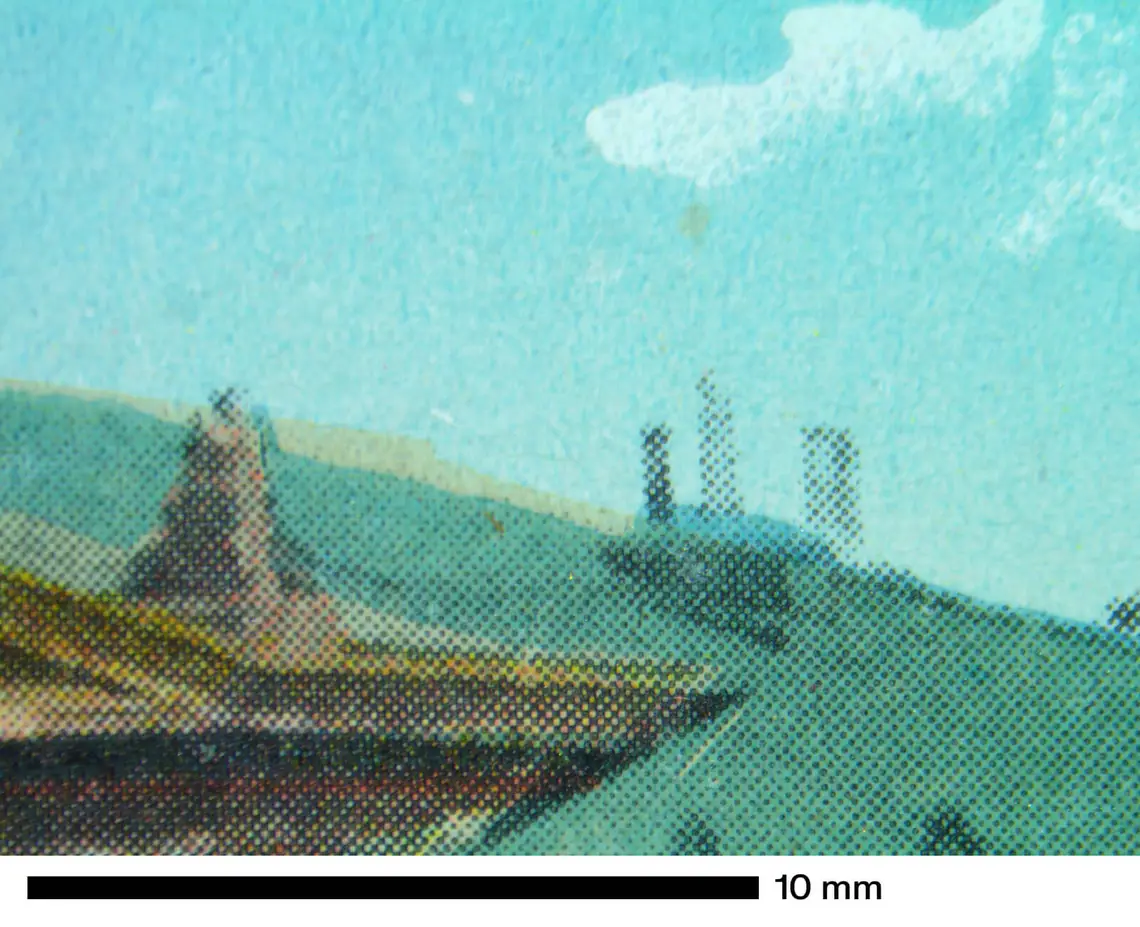 Die Autotypie, ein Hochdruckverfahren, war bis etwa 1910 die einzige Methode, Fotografien in Kombination mit Text gleichzeitig zu drucken und somit unkompliziert fotografische Abbildungen in Zeitungen und Bücher zu bringen. Das Verfahren galt nicht als vornehmes oder gar künstlerisches Illustrationsverfahren, da die Grautöne der fotografischen Vorlage weniger abgestuft wiedergegeben werden konnten als beispielsweise beim Lichtdruck. Charakteristisch für die Autotypie sind deutlich sichtbare, runde Rasterpunkte mit Farbquetschrändern. Die Punkte sind umso größer, je dunkler die Bildpartie ist. Seltener sind Korn- oder Linienrastervarianten anzutreffen. Die Autotypie benötigte beschichtete Kartons. Durch den Metalldruckstock konnten wesentlich höhere Auflagen als beispielsweise beim Lichtdruck erzielt werden. Die eigentliche Domäne der Autotypie bei Ansichtskarten bildete der Drei- oder Vierfarbendruck, populär gemacht durch die sogenannten Künstlerpostkarten. Darunter versteht man faksimileartig reproduzierte Postkartenentwürfe von zum Teil namhaften Künstler:innen, wie sie beispielsweise die Firma Philipp & Kramer in der Kaiser-Jubiläums-Ausstellung 1898 als Hersteller der offiziellen Ausstellungspostkarten der Öffentlichkeit in einer Schaudruckerei präsentierte (siehe Eingangsabbildung). Die ersten Schwarz-Weiß-Autotypie-Postkarten tauchten bereits in den frühen 1890er Jahren vereinzelt auf, die Vierfarben-Autotypie hielt sich bei den Ansichtskarten bis in die 1960er Jahre.