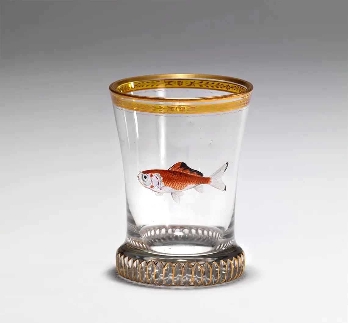 Vom städtischen Museum zwischen 1938 und 1945 über das Dorotheum angekauft: Anton Kothgasser, Ranftbecher mit Goldfisch, um 1815–1820, Wien Museum