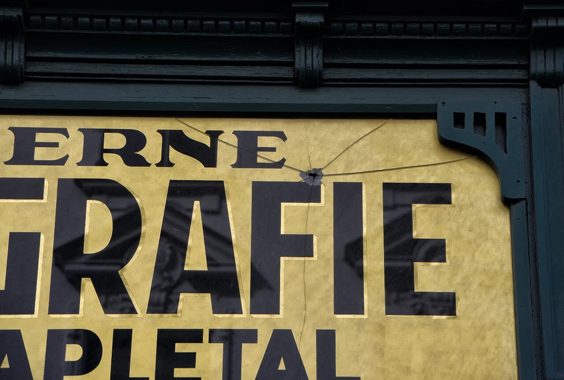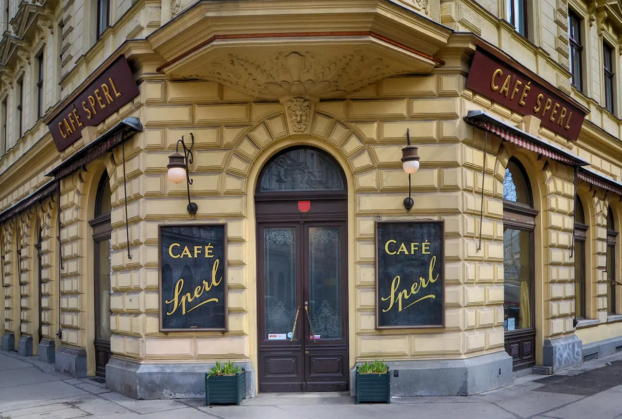 Das Café Sperl hatte bis 2020 zwei der schlichtesten, aber äußerst eleganten Schriftzüge der Stadt neben seinem Eingang hängen. Bedauerlicherweise wurden die Originalschilder durch Witterung beschädigt und in der Folge mangelhaft renoviert. Mittlerweise wurden sie leider durch Folienbeklebungen ersetzt. Noch zu sehen: Die dreidimensionalen, vergoldeten Buchstaben an den Seiten des Portals.