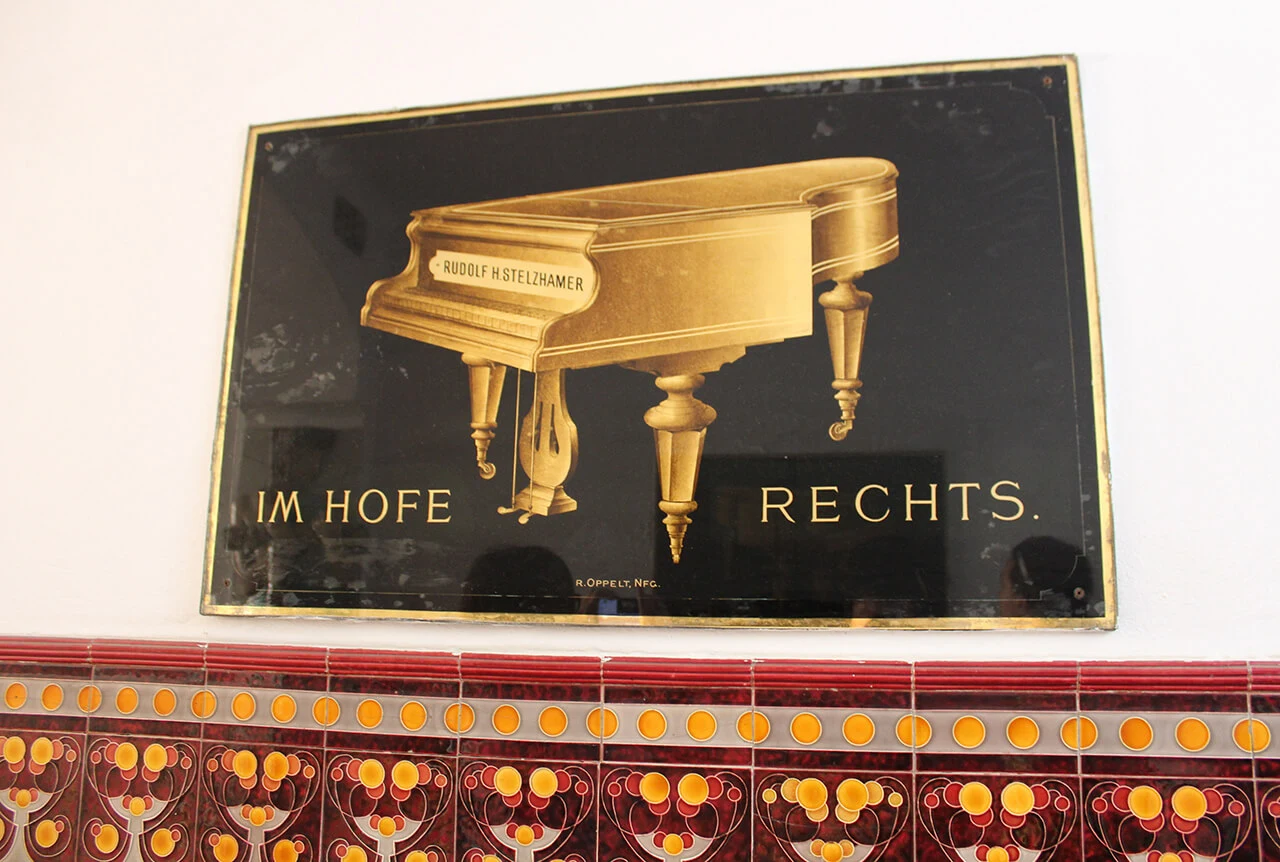 In der Einfahrt zum Innenhof befinden sich übrigens zwei wunderbar erhaltene vergoldete Schilder, die nicht öffentlich zugänglich sind. Sollte die freundliche Besitzerin des Nanna Shops nebenan das Tor öffnen, kann man sogar einen Blick darauf werfen.