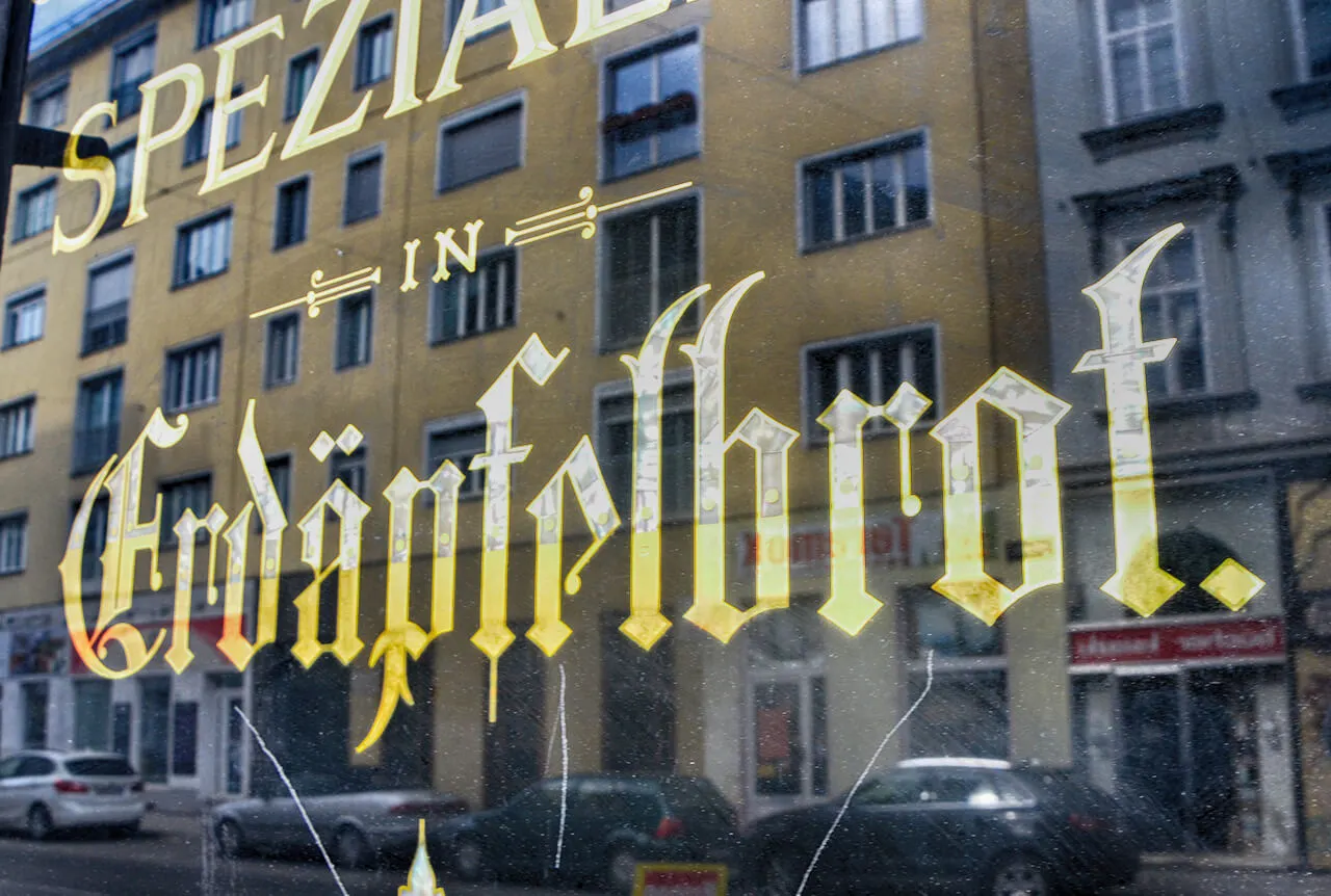 Pallas Athene, Secession, Pestsäule – in Wien wurde bei Vergoldungen an Gebäuden seit jeher nicht gespart. Weniger Beachtung finden aber die vergoldeten Ladenfronten und Geschäftsportale, die um die Jahrhundertwende en vogue wurden und Wiens Ruf als Zentrum der Schildermalerkunst begründeten. Der Einsatz von Gold vermittelte Eleganz und Exklusivität, durch den Schutz des Glases waren die Schriftzüge vor Witterungseinflüssen geschützt. Ausführungen reichten von rein typographischen Umsetzungen bis hin zu detailreichen Illustrationen aus Matt- und Glanzgold. Unsere Tour führt uns zu einigen verbliebenen Vergoldungen in den Bezirken VI bis VIII.