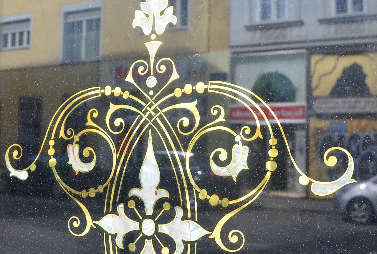 Handwerklich ist das Portal einer der außergewöhnlichsten Schildermalerarbeiten der Stadt. Perlmutteinlegearbeiten, Glanz- und Mattgold, raffinierte Typografie: Die alte Bäckerei zog alle Register. Leider wurde sie im Sommer 2018 überklebt, derzeit ist nur bei ganz genauer Betrachtung das vergoldete Portal unter der Folierung zu erahnen. Zumindest ist dieses Kleinod der Schildermalerkunst damit derzeit vor äußeren Einflüssen geschützt.