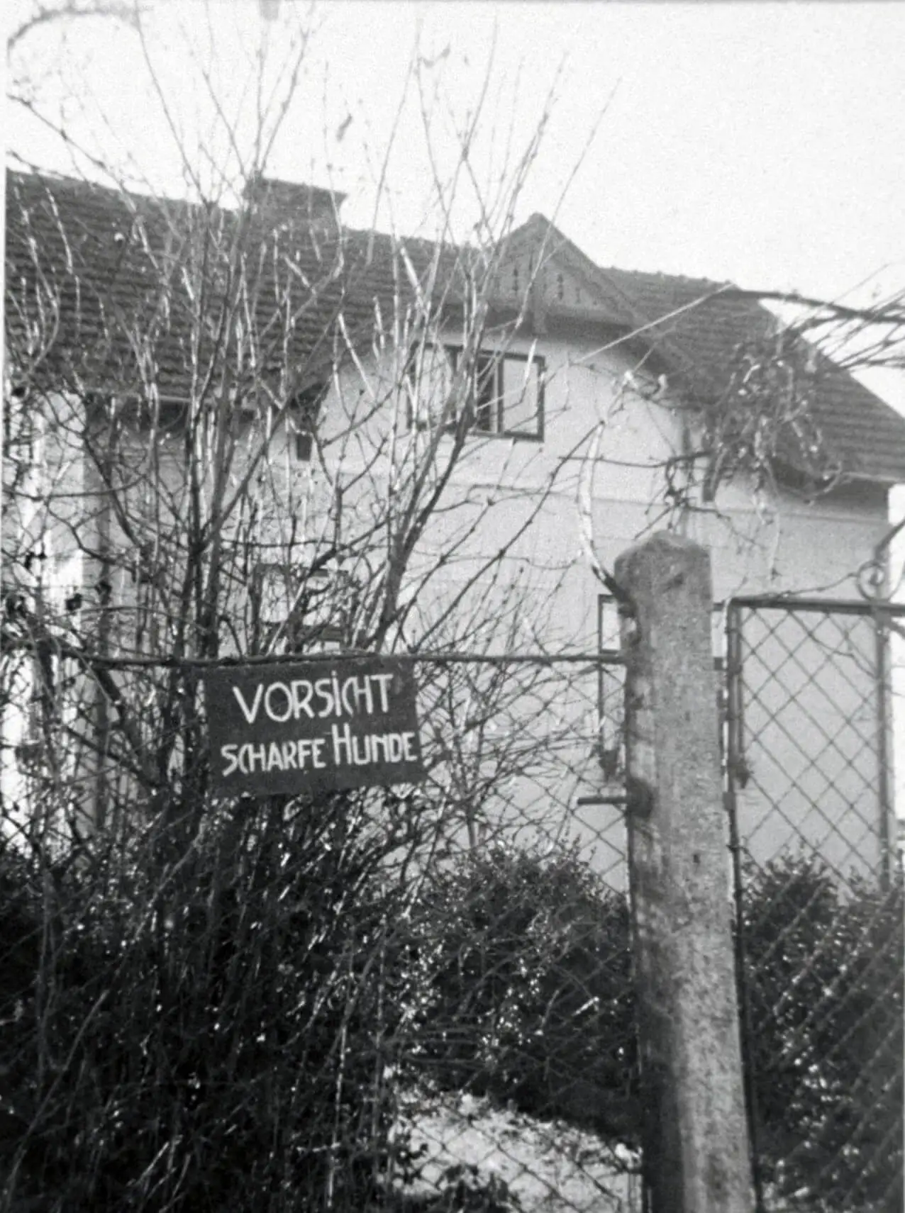 Rudolphina Menzel (li.) mit ihren Schwiegereltern, Ehemann und Hunden, in ihrem Haus in Kleinmünchen, Leo Baeck Institute, New York