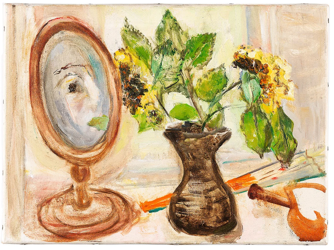 Marie-Louise von Motesiczky: Selbstporträt im Spiegel, gelbe Rosen, um 1976, Sammlung Wien Museum, erworben 2019 als Schenkung vom Marie-Louise von Motesiczky Charitable Trust