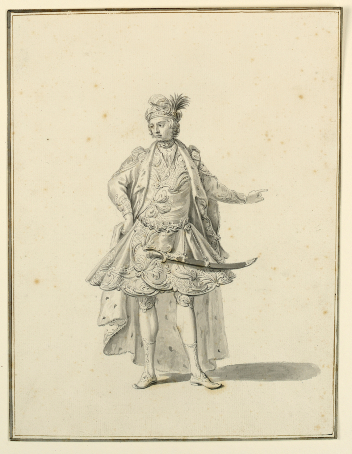 Giuseppe Galli Bibiena: Kostüm eines Persischen Prinzen, 1719, Zeichnung, Smithsonian Design Museum