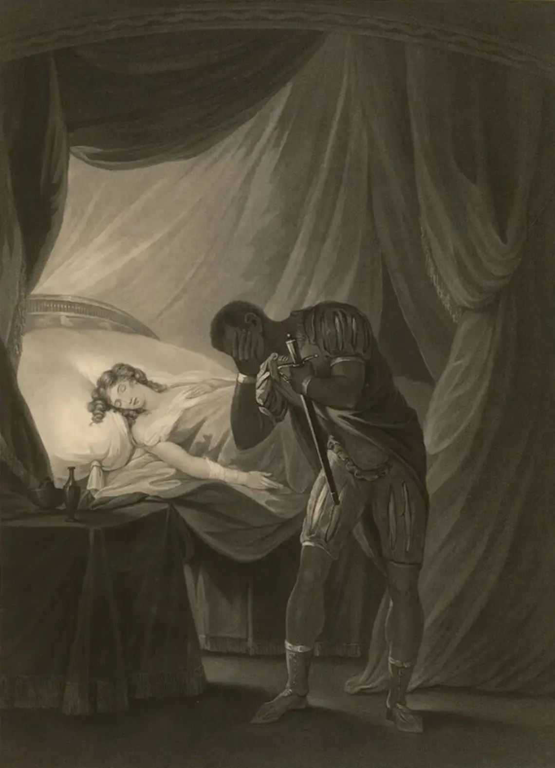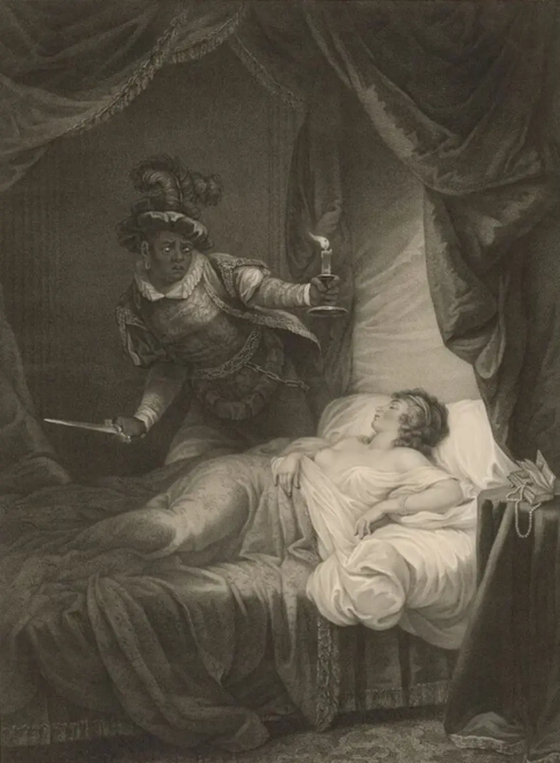 Ludwig Dessoir als Othello, Akt III, Szene III, 1858, Stahlstich, Wien Museum, Inv.-Nr. W 1239