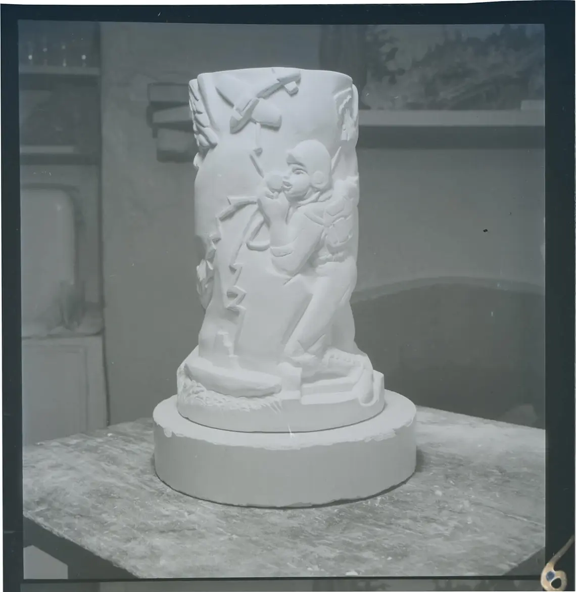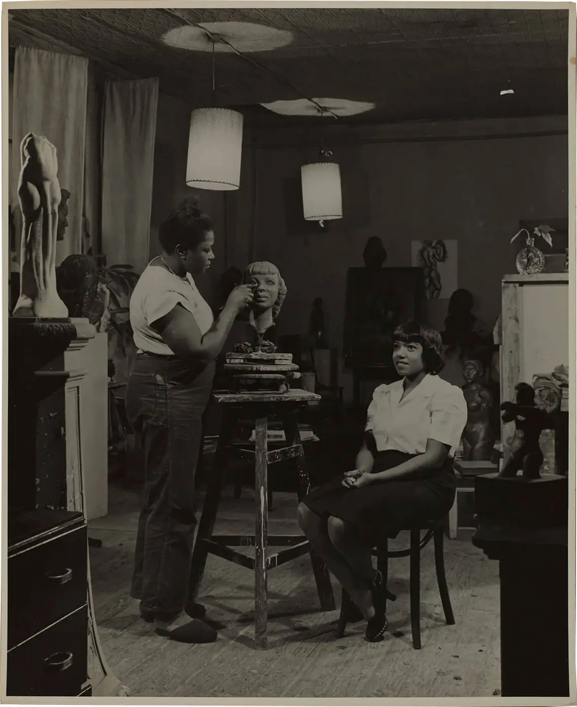 Auf der Rückseite des Fotos ist mit Bleistift vermerkt: „American Sculptress / Burke (?) / 1942 / (friend of Böhler)“. Der Urheber des Fotos, Robert Haas, kam auf der Flucht vor den Nationalsozialisten 1939 nach New York. Er kannte sein Fotomodell zu dem Zeitpunkt wohl kaum und kam nur durch seinen Bekannten Hans Böhler (1884–1961) mit ihr in Kontakt. Er war schon zwei Jahre zuvor in die USA geflohen. Böhler war ein Wiener Maler und Grafiker sowie Secessionsmitglied, bekannt für seine expressionistischen Porträts: kräftige, mit Kreide gezeichnete Akte genauso wie Ölgemälde, die durch ihre intensive Farbigkeit bis heute bestechen. Viele davon stellen Jazzkonzerte oder feiernde Menschen in den Bars von Harlem dar. Zwischen 1936 und 1950 lebte Böhler in den USA und war mitten im Geschehen, er beobachtete die Szenen, die er dann auf Leinwand bannte. In einem Interview anlässlich seines 75. Geburtstages erinnerte er sich: „New Yorker Luft hat etwas ganz Eigenes. […] Ich habe viele Leute kennengelernt, und habe gute Freunde unter den Malern. Die Stadt gefällt mir sehr. Ich bin ein Großstadtmensch, wie mir scheint. Und New York ist ja par excellence die Großstadt und auch wunderschön. Vom Wasser aus diese Türme zu sehen, ist einzigartig.“