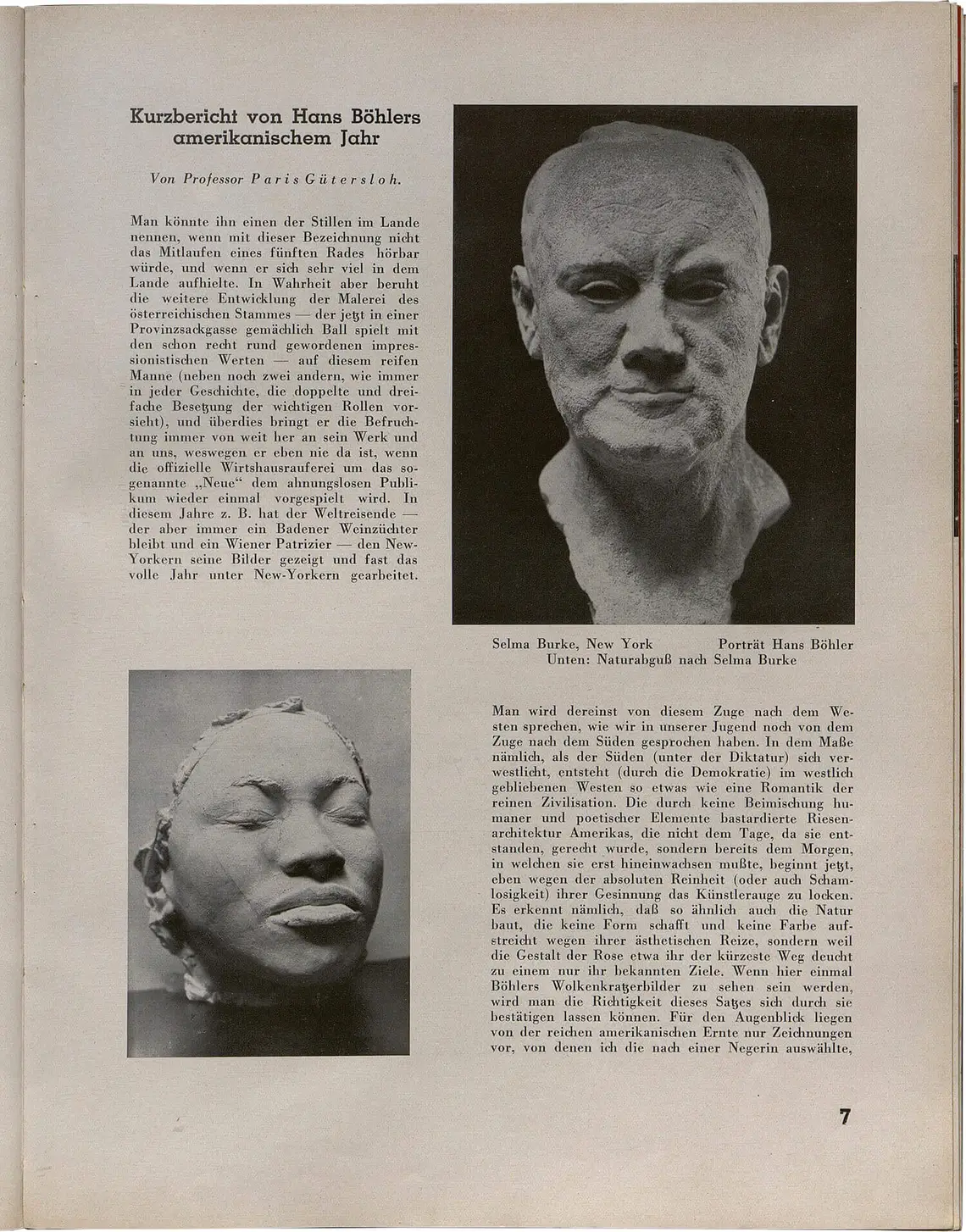 Bericht über Selma Burke und Hans Böhler in Österreichische Kunst, 1937, ANNO/ÖNB