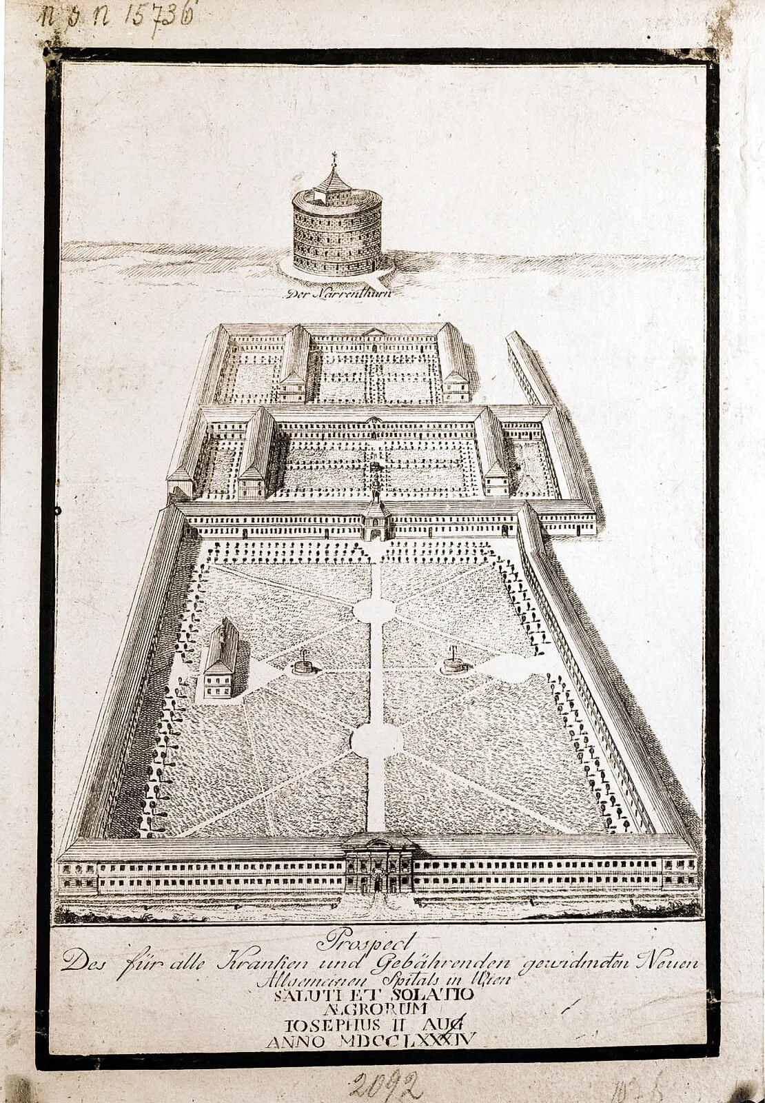 Zur Errichtung eines solchen Universalkrankenhauses sollte es in Form des Allgemeinen Krankenhauses jedoch erst rund 60 Jahre später im Rahmen der Reformen Josefs II. kommen. Ziel seiner Neuerungen war es, die bis dahin auf viele verschiedene Einrichtungen verstreuten unterschiedlichen Gruppen an Bedürftigen in Spezialeinrichtungen zu bündeln und bisherige Institutionen aufzulassen oder umzuwidmen. Dazu gründete er 1784 das „Hauptspital“, das aus fünf verschiedenen Teilen bestehen sollte: dem Allgemeinen Krankenhaus, dem Gebärhaus, dem „Tollhaus“ (heute „Narrenturm“), dem Findelhaus und mehreren Siechen- oder Versorgungshäusern. Auch hier zeigt sich eine differenzierte Verwendung der Begriffe „Spital“ und „Krankenhaus“: das „(Haupt-)Spital“ war das Ganze, das Krankenhaus nur ein Teil davon.