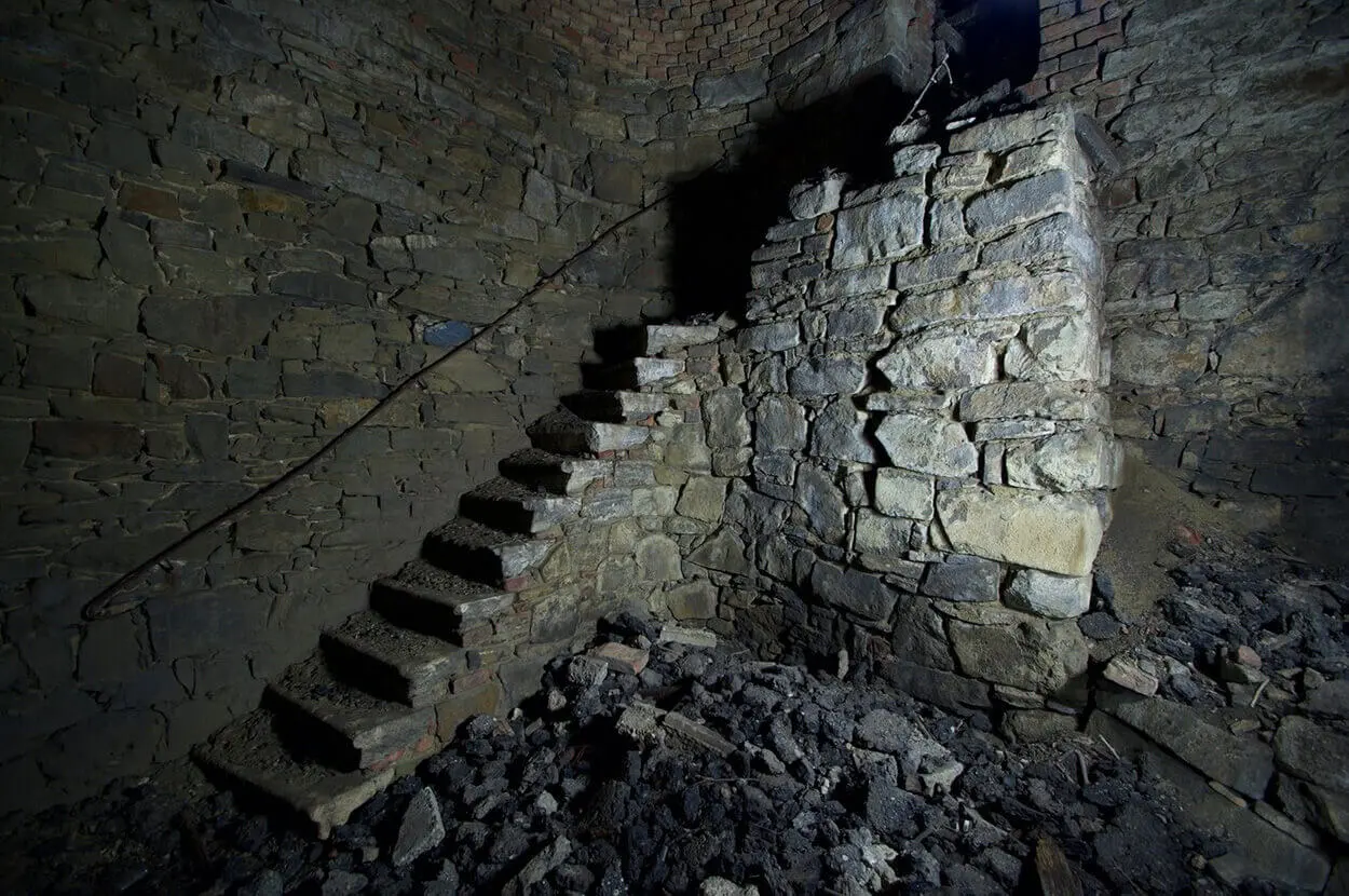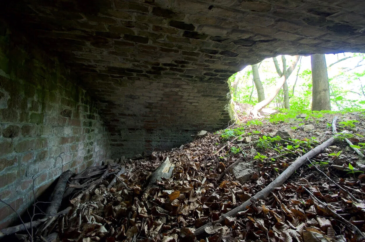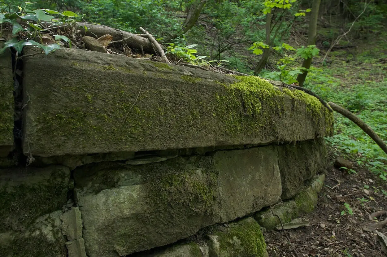 Auch oberirdisch blieb vom einstigen Prunkbau einiges erhalten: Steinmauern, eingebrochene Gewölbe und Hangstützmauern ragen als Relikte der noblen Vergangenheit aus dem feuchten Erdboden: