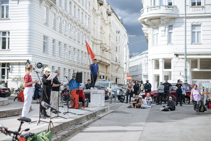 Gemeinsam mit der Universität für Angewandte Kunst und der Gruppe Schandwache haben wir beschlossen, weiter Druck zu machen. Die Umbenennung des Dr.-Karl-Lueger-Platzes wurde bisher nur wenig thematisiert. Deshalb stellen wir uns jeden Montag öffentlich die Frage: Wen ehren? Die Frage wurde in Form von literarischen Texten und persönlichen Statements direkt am Platz verlesen. Wir haben somit jeden Montag laut daran erinnert, wer hier geehrt wird. Nach der Sommerpause geht es vermutlich weiter.