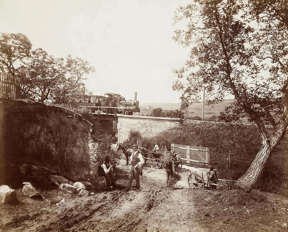 Drahtseilbahn auf die Sophienalpe, „Fiakerwagen“, Fotografie von Michael Frankenstein, um 1875, Wien Museum