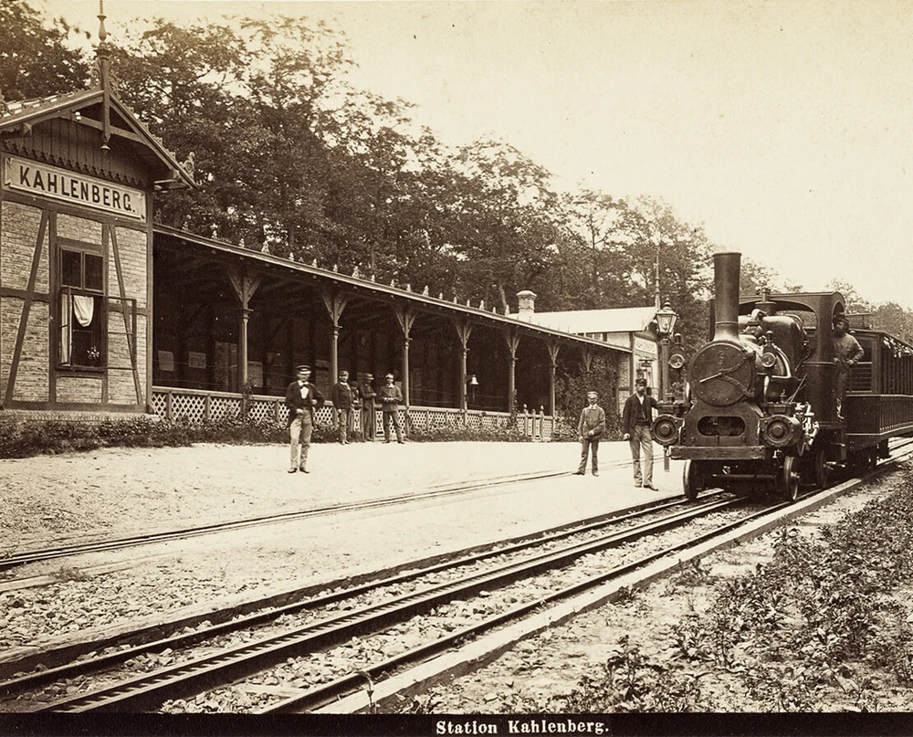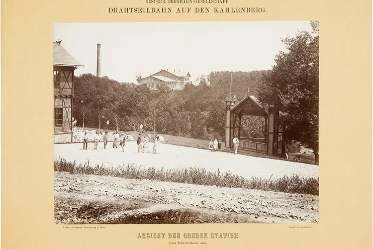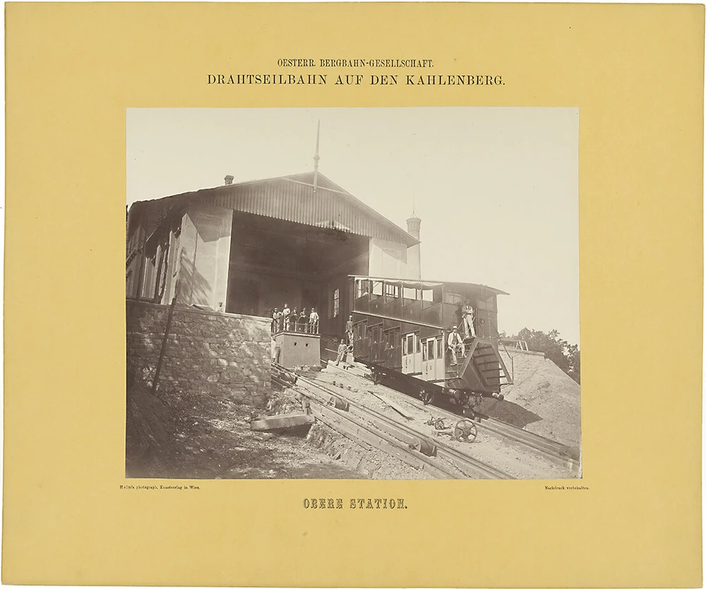 Für die Österreichische Bergbahn-Gesellschaft A.G. schuf der Fotograf Amand Helm (1831-1893) wohl kurz vor der Eröffnung der Bahn im Juli 1873 die Fotoserie „Drahtseilbahn auf den Kahlenberg“, die nicht nur die Bahn und deren Technik selbst sowie die dazugehörigen Betriebs- und Lokalgebäude, sondern auch die landschaftlichen Reize des Kahlenbergs und die von hier möglichen Ausblicke dokumentierte. Michael Frankensteins (1843-1918) wohl etwas später aufgenommene Fotografien konzentrieren sich auf die Darstellung der Trasse und der Stationsgebäude der Bahn.
