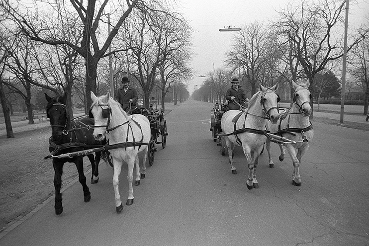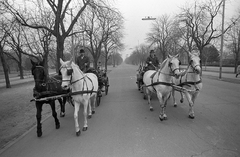Didi Sattmann: Fiakerrennen „Peter Altenberg Gedächtnispreis“ mit Martin Kippenberger und Albert Oehlen, 1984