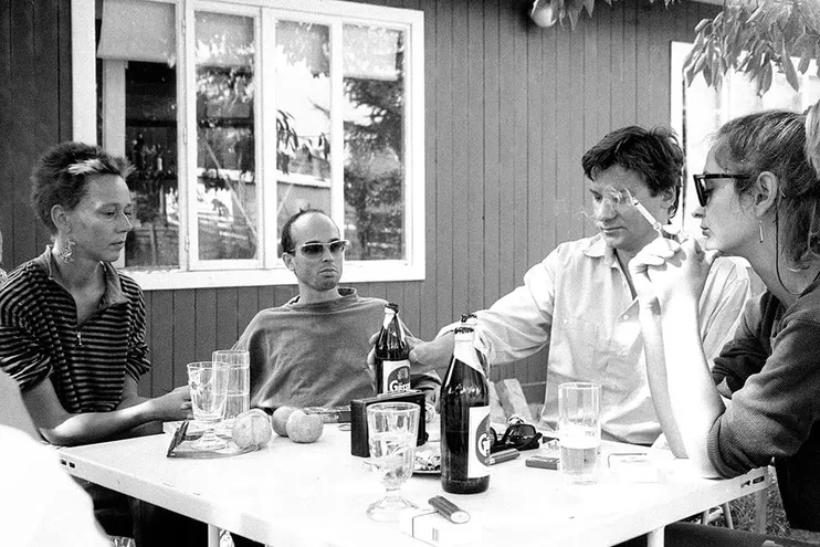 Ich wollte einfach dabeisein, die Sachen haben sich so ergeben. Mal gab es eine Attersee-Matinee, dann wieder wurde ein ausgestopfter Elefant aus dem Naturhistorischen Museum, der schon ganz desolat war, in das Landhaus von Kurt Kalb gebracht. Dort sind wir hingefahren und haben auf den Elefanten gewartet. Aber der Elefant am Transportanhänger konnte nicht unter einer Brücke durch oder so ähnlich, also haben wir gewartet bis zum Morgengrauen, bis Armin Thurnher vom „Falter“ mich und meine Frau Karin nach Hause gebracht hat. Ich habe den Elefanten nie gesehen, aber das war egal, Hauptsache, ich war dabei. Mich hat das Hinein-in-den-Tag-oder-in-die-Nacht-Leben der Künstler begeistert, die kaufmännische Seite von Kunst habe ich ja nie erlebt. Am faszinierendsten war die gemeinsame Zeit von Martin Kippenberger und Albert Oehlen, die Wien unsicher gemacht haben. Die Denkweise der beiden! Das war unglaublich. Ich hab sie fotografiert und hab die Fotos angeboten, aber niemand wollte sie haben. Wer sind die? Jetzt ist der Kippenberger lang tot und ein Star in allen Museen. Damals hat er unglaublich darunter gelitten, dass die Leute seine Kunst nicht verstanden haben.