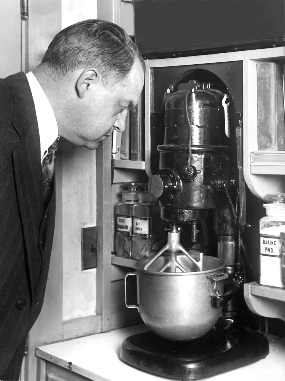 Die Entstehungsgeschichte der Küchenmaschine ist mit einer Anekdote verbunden. In Ohio (USA) soll Anfang des 20. Jahrhunderts der Ingenieur Herbert Johnston beobachtet haben, wie sich die Bäcker beim händischen Teigkneten mit einem Kochlöffel plagten. Es müsse dafür doch einen einfacheren und effektiveren Weg geben, dachte sich Johnston. 1914 brachte er mit der Hobart Manufacturing Company einen elektrischen Teigmixer auf den Markt, der den Bäckern eine massive Arbeitserleichterung brachte und mit einer Füllmenge von 75 Litern perfekt für den professionellen Gebrauch war. Nur fünf Jahre später entwickelte der Ingenieur davon eine kompaktere Version und ließ sie von den Ehefrauen der Firmenmitarbeiter testen. Diese waren von der Erfindung begeistert und nannten sie „the best kitchen aid I’ve ever had”. So kam Johnston auf den Markennamen „Kitchen Aid”, den er 1919 patentieren ließ, als er die „Kitchen Aid Manufacturing Company" gründete.