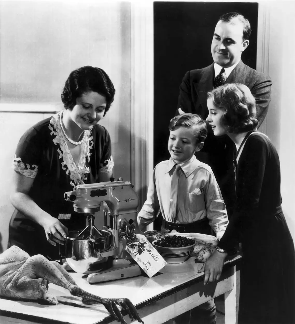 In Österreich nimmt die Geschichte der Küchenmaschine mit dem Boom der Haushaltsgeräte in der Zwischen- und in der Nachkriegszeit ihren Lauf. Voraussetzung war der Anschluss der Haushalte an das Stromnetz, der ab dem Ende des 19. Jahrhunderts schrittweise vollzogen wurde. „Bis zur Zwischenkriegszeit gab es bereits ein breites Angebot an Elektrogeräten, diese waren allerdings technisch noch nicht sehr ausgereift und auch preislich nur für die wenigsten Menschen erschwinglich”, erklärt Susanne Breuss, Kulturwissenschaftlerin mit Forschungsschwerpunkt Alltagskultur und bis 2023 Kuratorin im Wien Museum. Der Bevölkerung sei zwar die erhebliche Arbeitserleichterung, die mit der Küchenmaschine einhergeht, bewusst gewesen. Doch für die Anschaffung von elektrischen Haushaltsgeräten, etwa einer Küchenmaschine, habe man oft ein komplettes Monatsgehalt ansparen müssen.