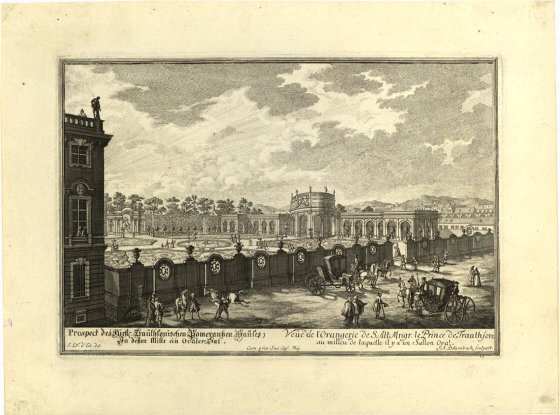 Und die goldfarbenen Früchte wuchsen auch in Wien. Klimabedingt allerdings nicht in der „freien Natur“, sondern in den Gewächshäusern der Adeligen, in den sogenannten „Orangerien“, die sich in der Renaissance zu einem festen Bestandteil des europäischen Architekturkanons entwickelt hatten – sie waren gleichsam die bauliche Manifestation des Kulturpflanzentransfers und der kulturellen Aneignung dieser ursprünglich hier nicht heimischen Pflanzen. So wurde in Schönbrunn – nachdem es dort bereits zuvor einen Orangeriegarten und ein Gewächshaus für die Überwinterung der Pflanzen gegeben hatte – um 1754 im Auftrag von Kaiser Franz I. Stephan und Maria Theresia die neben Versailles größte Orangerie Europas errichtet.