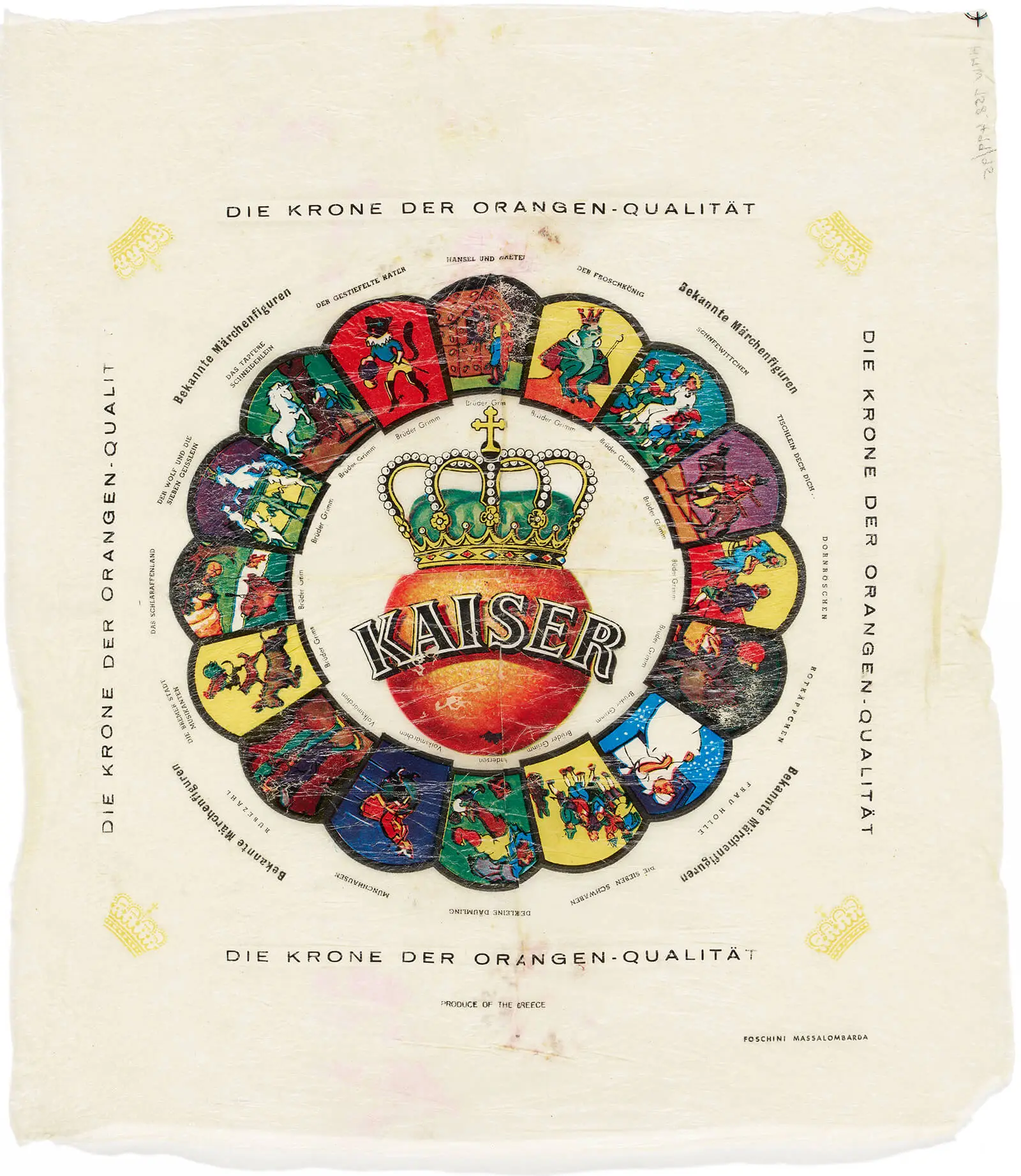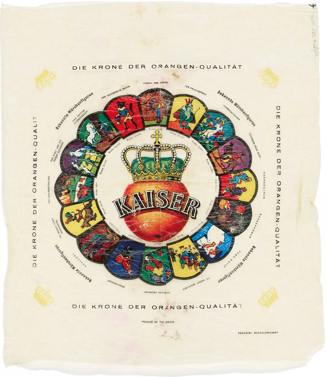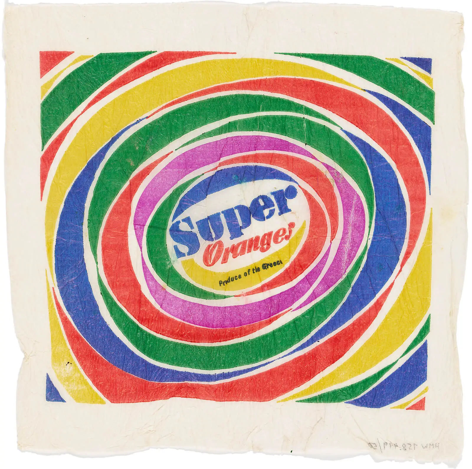 Orangenpapier „Super Oranges / Product of the Greece“ (Ausschnitt), ca. 1970/80, Wien Museum, Inv.-Nr. 158.499/50