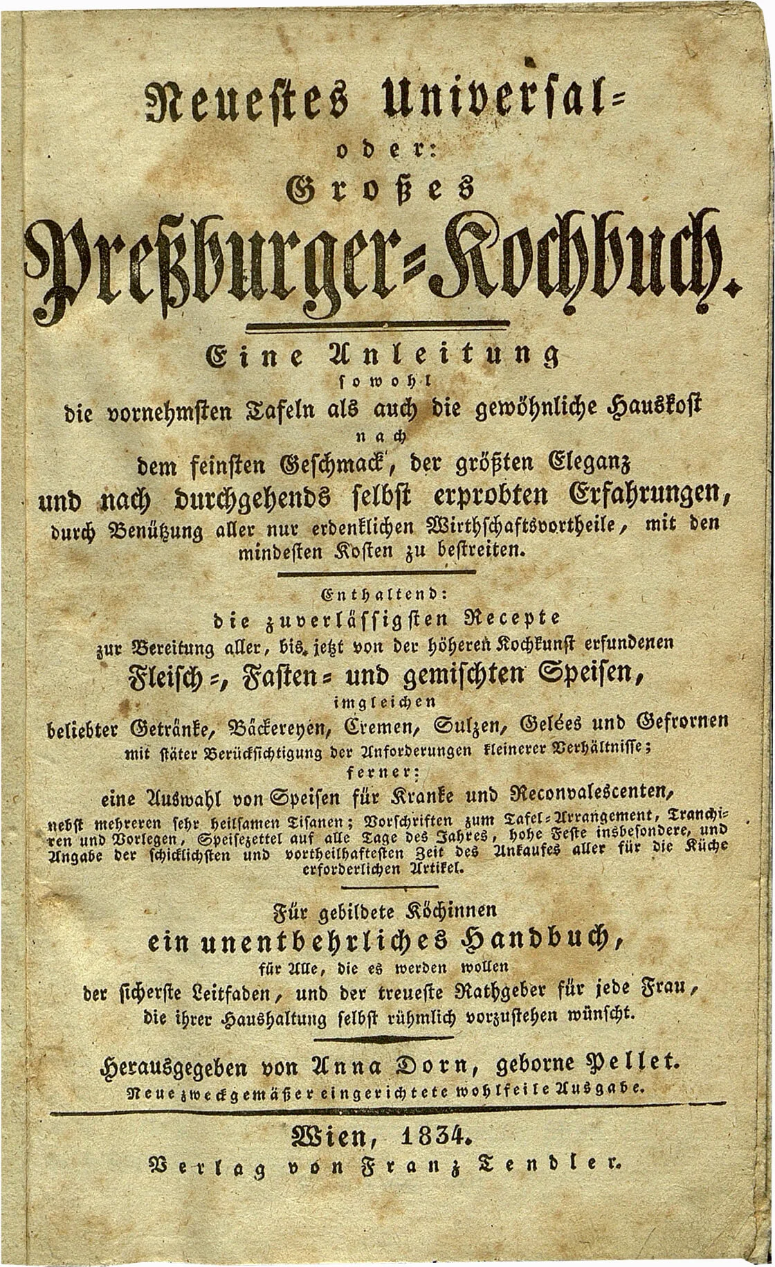 Anna Dorn: Neuestes Universal- oder: Großes Wiener-Kochbuch, Wien 1827.