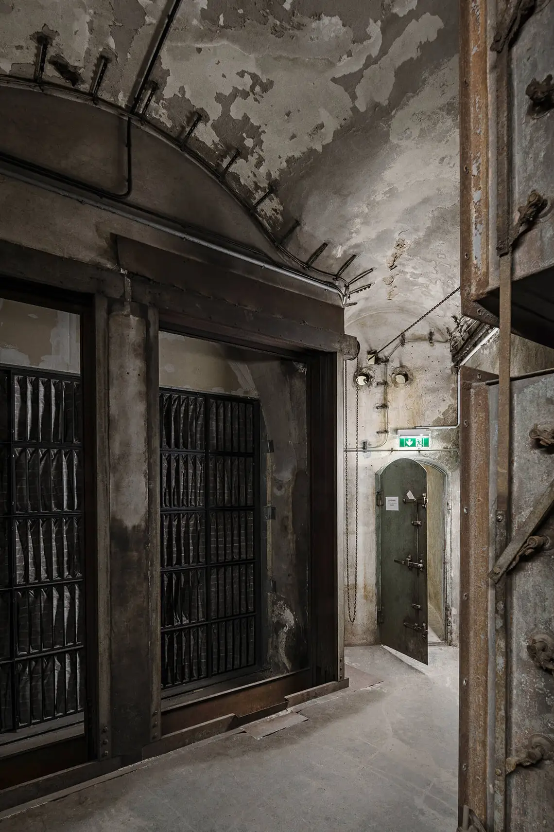 Im Laufe der Entwicklung traten die anfänglich verborgenen eisernen Konstruktionselemente sukzessive immer mehr an die Architekturoberfläche, bis gegen Ende des 19. Jahrhunderts das strukturbildende Material auch gestalterisch dominierte. Ein Zweckbau, der als Zwischenstufe dieser Entwicklung gelesen werden kann, ist die ehemalige Livree-Garderobe der Beschäftigten des Obersthofmeisteramts (das spätere Monturdepot des Kunsthistorischen Museums) in der Wiener Hofburg. Bei diesem nicht öffentlich zugänglichen Betriebsraum wurde, wohl in erster Linie aus ökonomischen Überlegungen, die Eisenkonstruktion nicht mehr verkleidet, aber für die Ausstattung durchaus hochwertige, repräsentative Materialien gewählt. Die Bodenfliesen stammen aus der Produktion der Keramikfabrik Villeroy & Boch. Diese für das Ende des 19. Jahrhunderts in Wien so typischen Steingutfliesen zeigen heute nahezu unverändert ihre Ornamentik und strahlende Farbigkeit. Um die feuchteempfindlichen Monturen aus organischen Materialien trocken zu halten und für deren langfristigen Erhalt zu sorgen, wurde ein Ventilations- und Heizungssystem auf Basis mittlerer Technologie eingebaut. Die von den noch im Original erhaltenen gusseisernen Heizkörpern erzeugte warme und trockene Luft zirkuliert, von der natürlichen Thermik angetrieben, durch Schlitze und Gitterroste im Boden im gesamten Depotraum. In Verbindung mit der Speichermasse des massiven, raumbildenden Mauerwerks wurde so langfristig ein stabiles Innenraumklima aufrechterhalten, in dem die einwandfreie Lagerung der Monturen gesichert war. Das Kunsthistorische Museum nutzte diesen Raum noch bis 2024 zur optimalen Lagerung historisch wertvoller Textilien. Das Monturdepot stellt damit in der Entwicklung zur nach außen gezeigten, gestaltbestimmenden Eisenkonstruktion eine Zwischenstufe dar: einen nicht-repräsentativen Raum, einen Zweckbau für die Dienerschaft, in dem Konstruktion und mittlere Technologie bereits sichtbar sind.